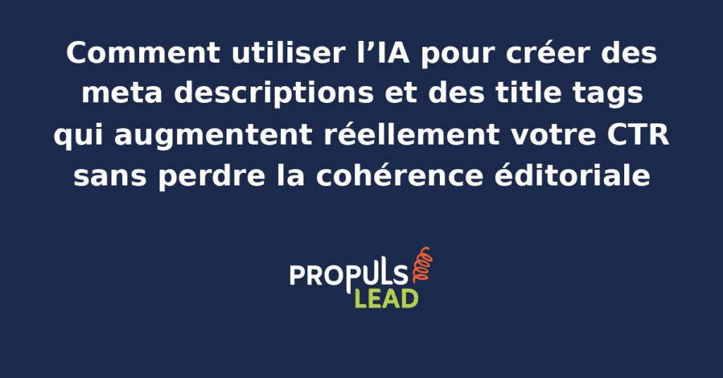 Chez Propuls’Lead, nous intégrons cette pratique dans tous les workflows de production de contenu, parce qu’elle représente l’un des leviers SEO les plus rentables à mettre en place pour les PME. Cet article présente la méthode pour utiliser l’IA sur ces balises sans perdre en qualité, avec un focus sur les pièges à éviter et les indicateurs à suivre.